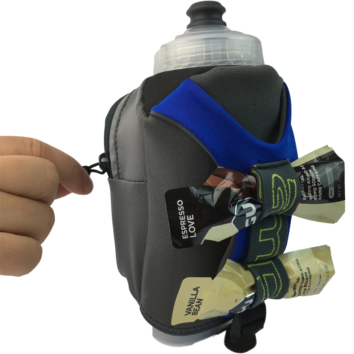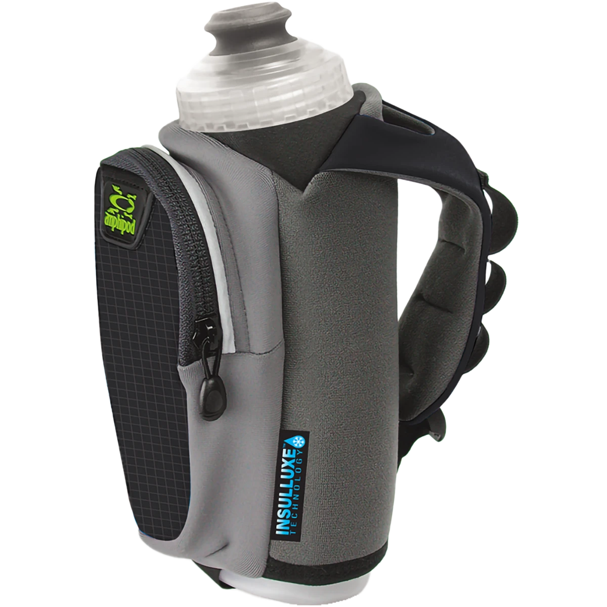 - Insulated sleeve with thumb-lock design keeps liquids cool and hands sweat free while eliminating cramping tension