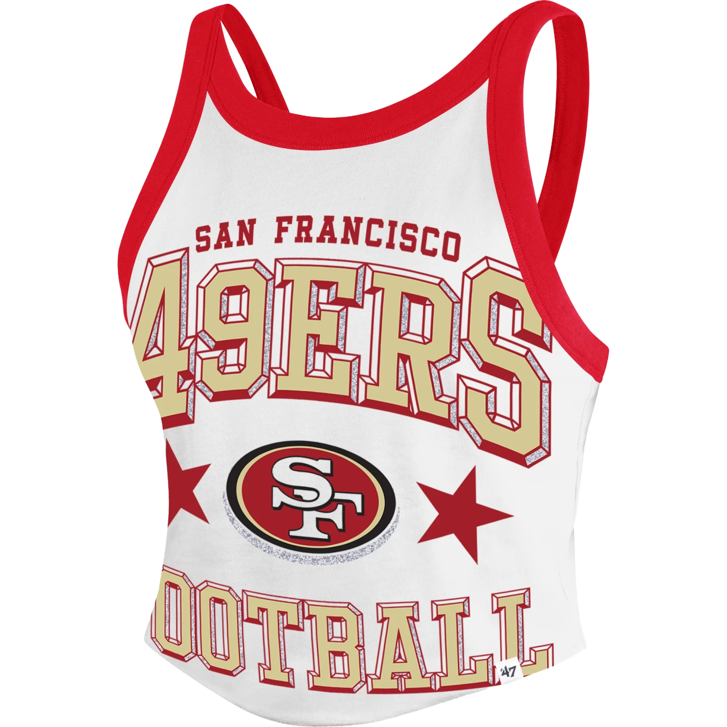 The Energize ’47 Sporty Tank is a cropped women’s tank top made from cotton stretch jersey featuring ribbed arm straps and oversized screen-printed graphics with glitter accents.