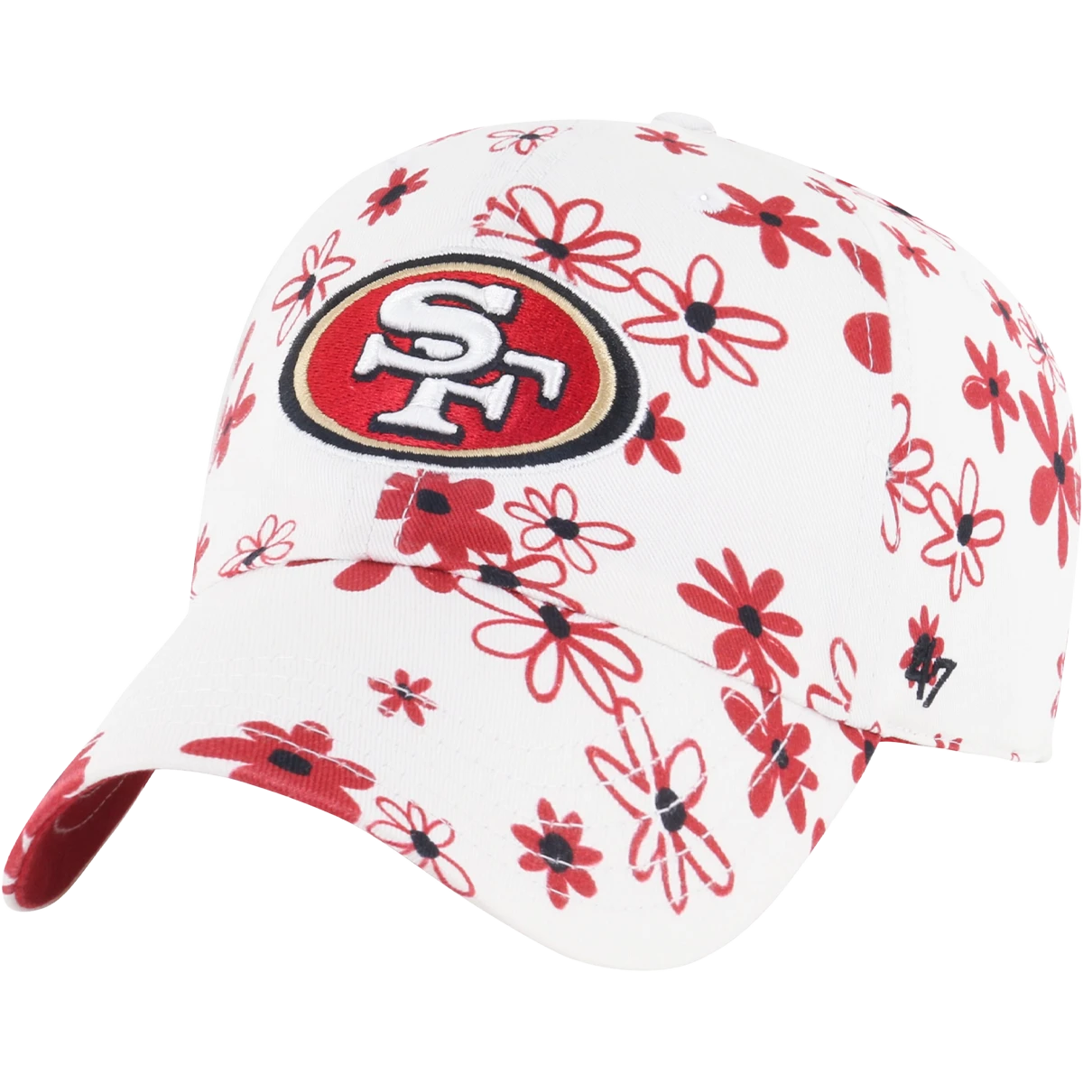 Get your kiddo ready to cheer for the San Francisco 49ers with this ’47 Daisy Delight Clean Up Adjustable Hat. The ’47 Clean Up silhouette provides a relaxed crown and curved visor, offering a comfortable fit for your young fan. Made from garment-washed cotton twill, this hat boasts a soft, worn-in feel and features an embroidered team logo accented with charming sublimated daisy graphics.