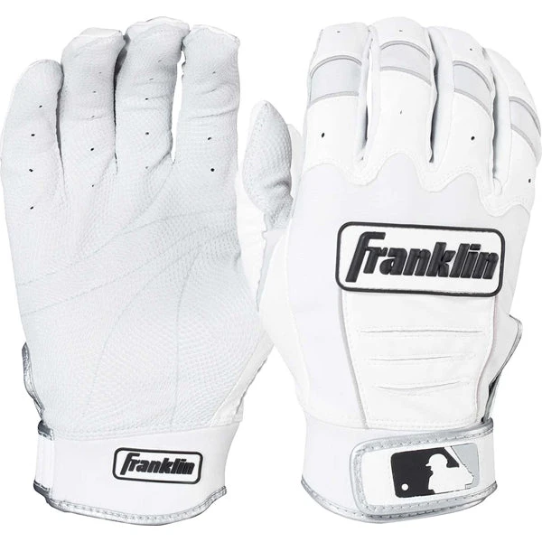 The Franklin CFX Pro Series Baseball Batting Gloves are worn by the most Franklin Pros in the majors today including stars like Paul Goldschmidt, Justin Turner, Ronald Acuna Jr., and Gary Sanchez. These major league gloves are designed to improve performance and increase grip on any bat in all weather conditions. Made with Pittards Digital sheepskin leather the CFX Pro Series batting glove provide long-lasting softness and tactility. Find the perfect color to match your team’s colors from our extensive collection of custom batting gloves.