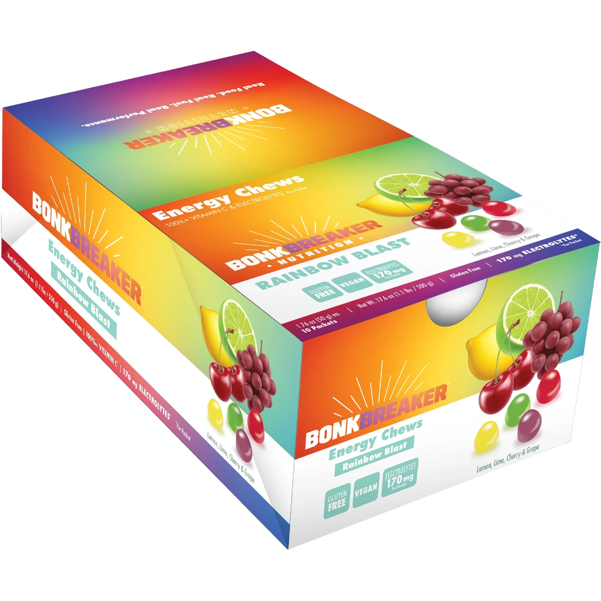 Through a combination of organic sugar sources, chews provide fast acting carbohydrates and electrolytes to aid in muscle contraction. Unlike energy gels, they can be eaten in whatever portion an athlete needs. Energy Chews are a tasty and nutritious product that pack over 100% of your Vitamin C daily value in one packet!
