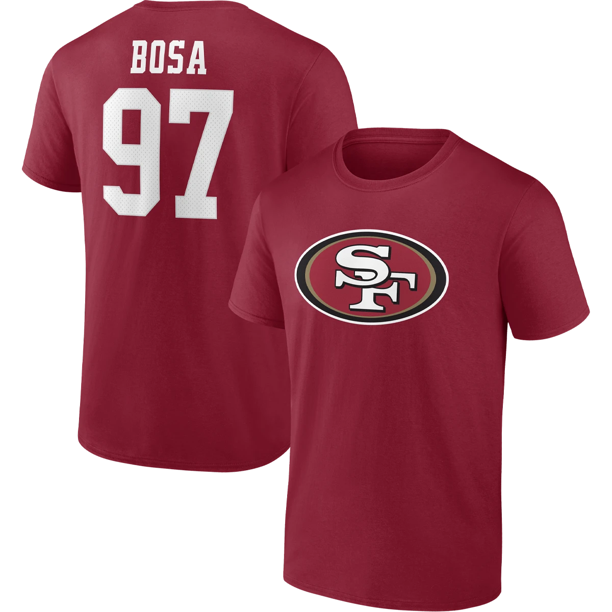 Let your tee tell everyone which San Francisco 49ers player you’re most excited to see hit the field with this Nick Bosa Icon Name and Number T-shirt from Fanatics. It features the San Francisco 49ers logo printed across the chest and Nick Bosa graphics with faux mesh numbers on the back. Cotton fabric provides a lightweight, comfortable feel that’s ideal for all-day wear.