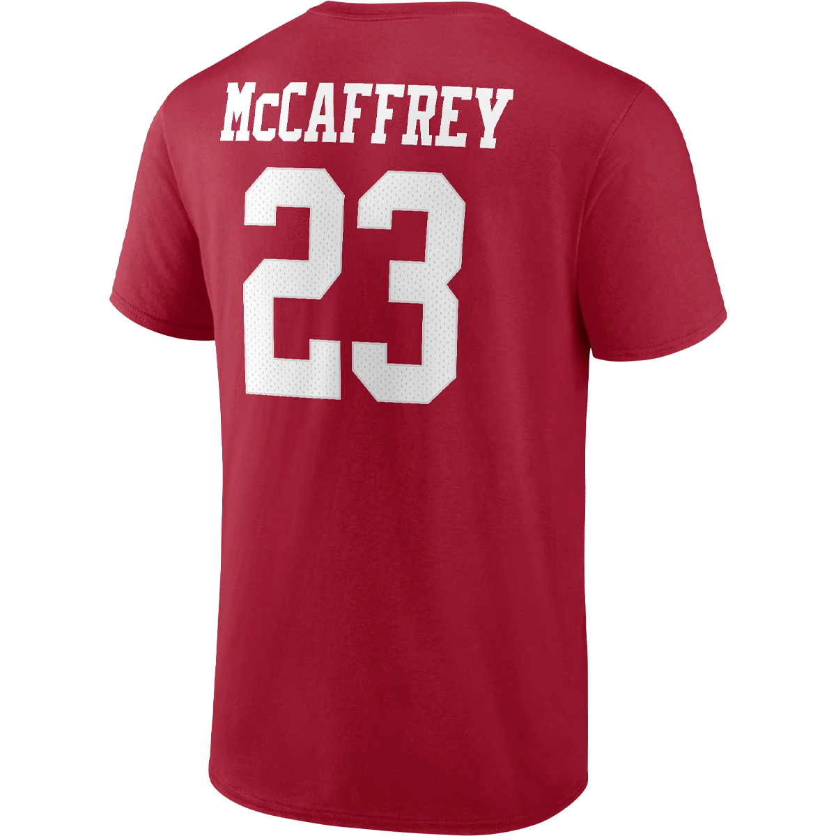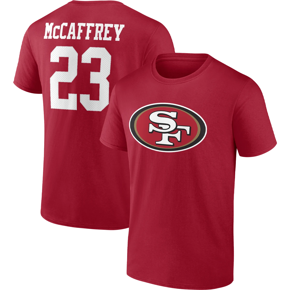 Let your tee tell everyone which San Francisco 49ers player you’re most excited to see hit the field with this Christian McCaffrey Icon Name and Number T-shirt from Fanatics. It features the San Francisco 49ers logo printed across the chest and Christian McCaffrey details with faux mesh numbers on the back. Cotton fabric provides a lightweight, comfortable feel that’s ideal for all-day wear.