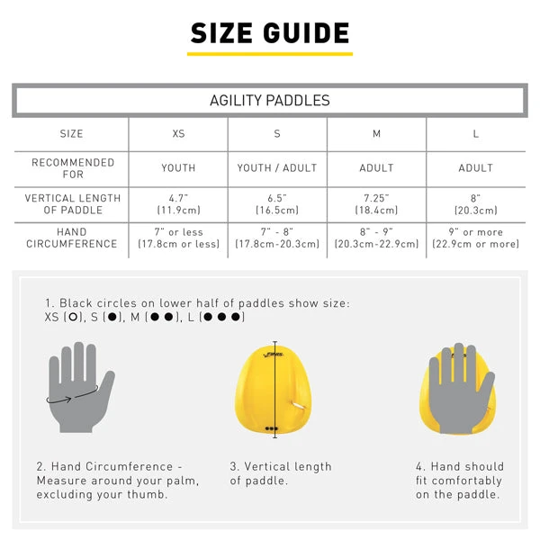 The Agility Paddles are designed to provide swimmers with instant stroke feedback – even after just one lap! Now made in a new floating material that is great for all swimmers, from learn-to-swim to triathletes. The strapless design fits the natural contour of your hand and teaches you to apply positive pressure throughout your stroke. If you do not maintain a proper stroke, the paddle will let you know by shifting or falling off. This simple paddle will keep you conscious of your technique, build strength and heighten your feel for the water.