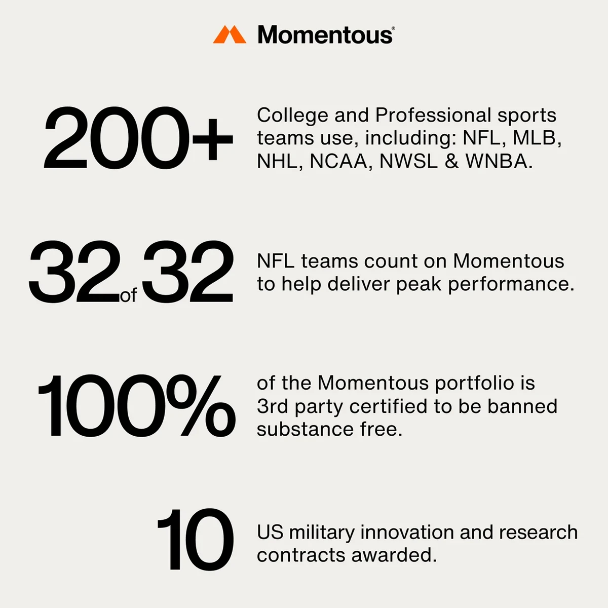 - No sucralose or artificial ingredients. Every component is backed by science and developed with experts to meet the Momentous Standard™