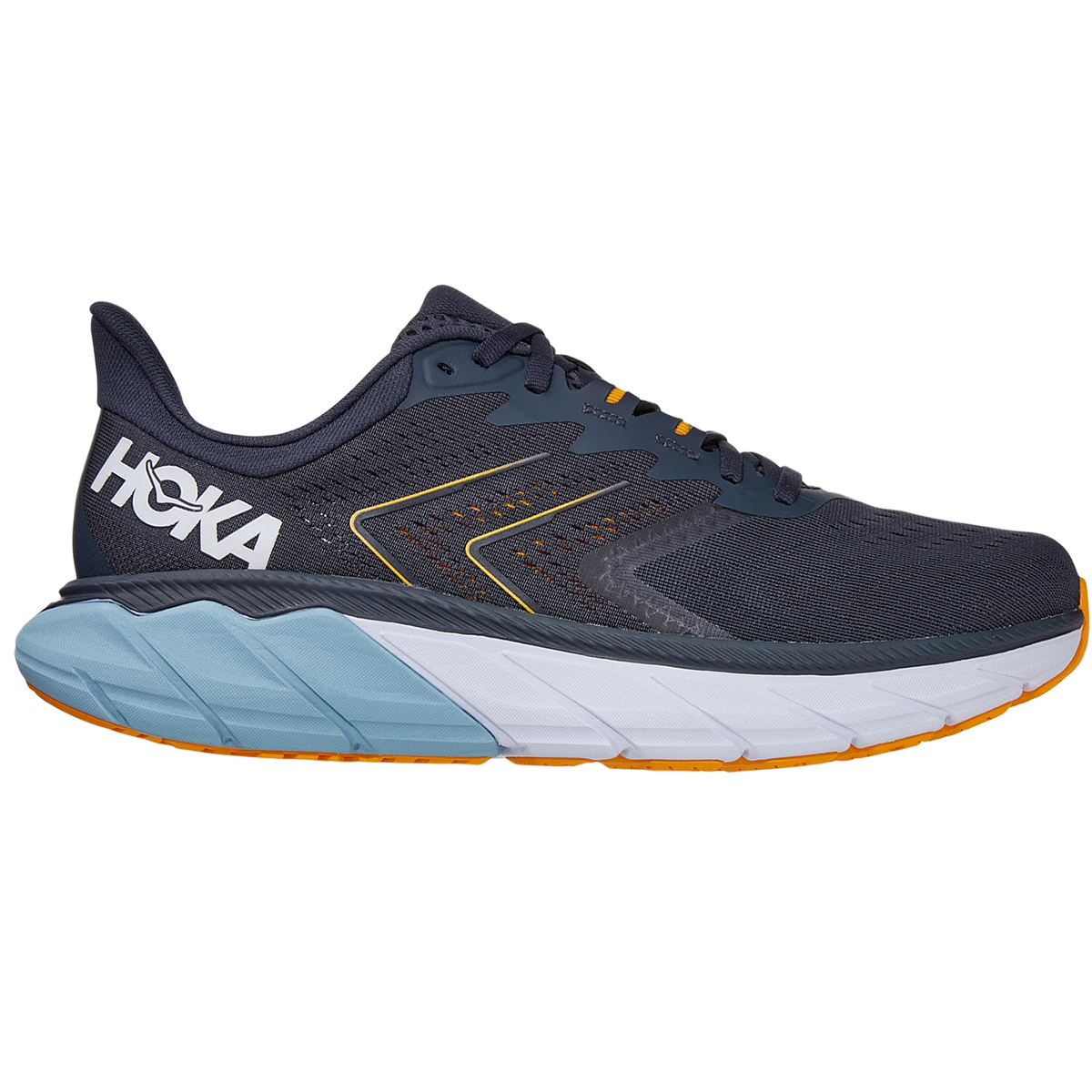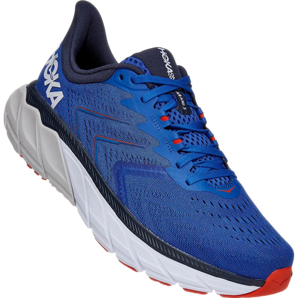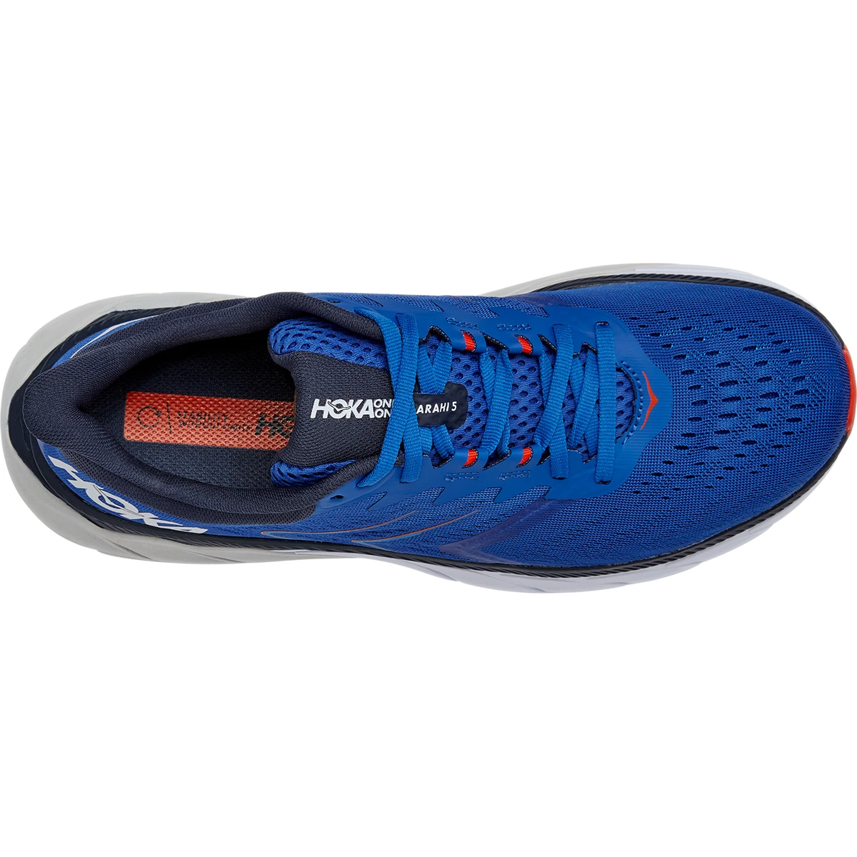 Boasting a seemingly contradictory combination of maximum cushioning and minimal weight, the Arahi 5 delivers a soft, smooth alternative to traditional support shoes. A brand-new shoe from top to bottom, the Arahi 5 was envisioned with a laser focus on fit. Designed with structured, engineered mesh at the heel for midfoot security and breathable, open mesh at the forefoot, the new upper is grounded in an extremely resilient, ultralight foam. Outfitted with an intuitive pull tab for easy on-and-off, this daily runner offers a refined collar shape that alleviates pressure on the Achilles.