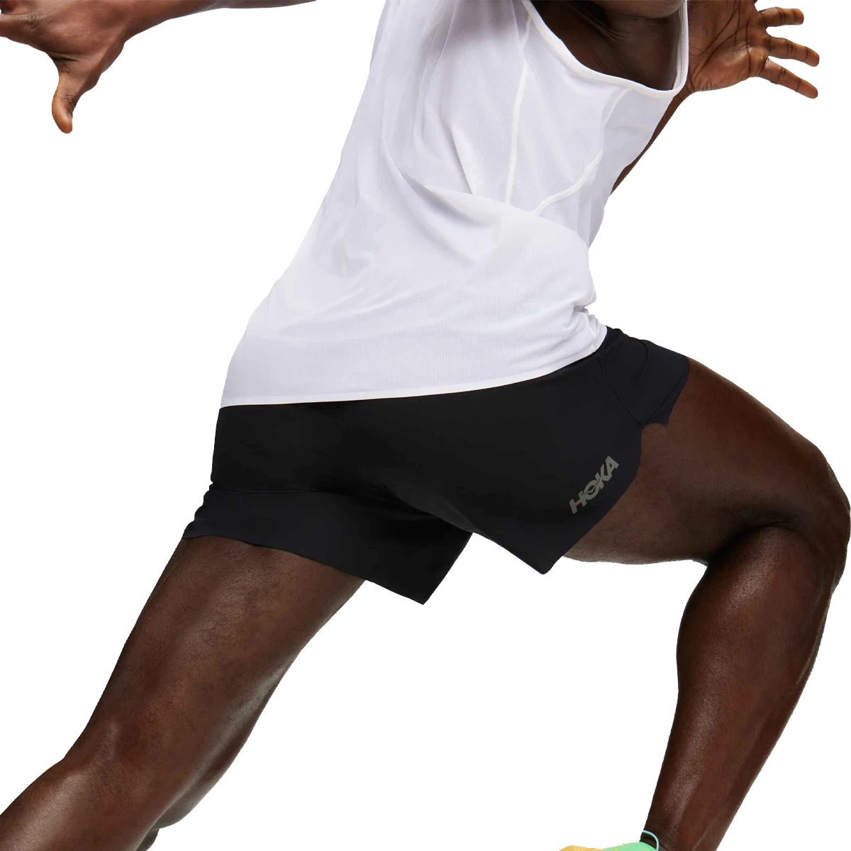 Geared to keep you cool and dry till the last mile, Hoka’s 5” Glide Short has been obsessively constructed with a supportive inner liner that moves with the body while providing ample coverage. Finished with an ultra-stretchy woven exterior, this high-performance short is equipped with an elastic waistband, mesh storage system, and zippered pocket.