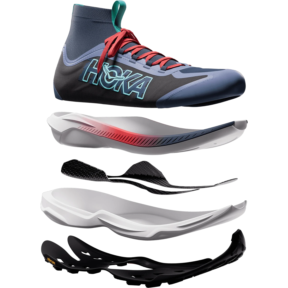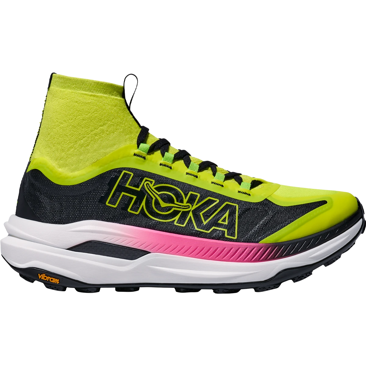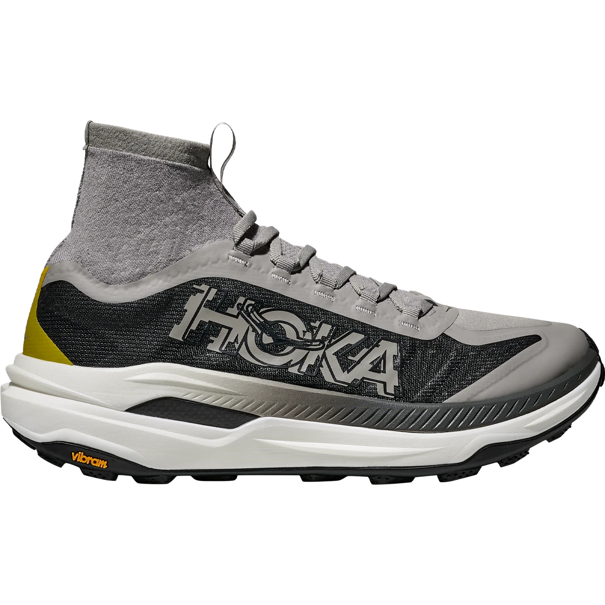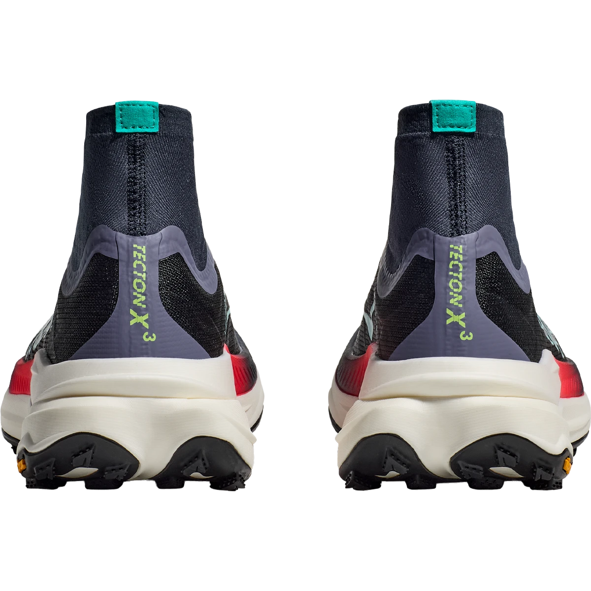 Ready to propel you through gnarly terrain, the Tecton X 3 adds winglets to its carbon fiber plates for extra stability in just the right spots, and two layers of PEBA in the midsole—Hoka’s lightest, most resilient compound. Redesigned lug shape and positioning on a Vibram® Megagrip with Litebase outsole provide better traction, while a dynamic vamp allows feet to splay as the miles fly by. Topping it off, a knit collar extends up from the tongue like a gaiter to mitigate trail debris, and a lightweight Matryx® textile upper makes this version more durable and trail-worthy than ever.