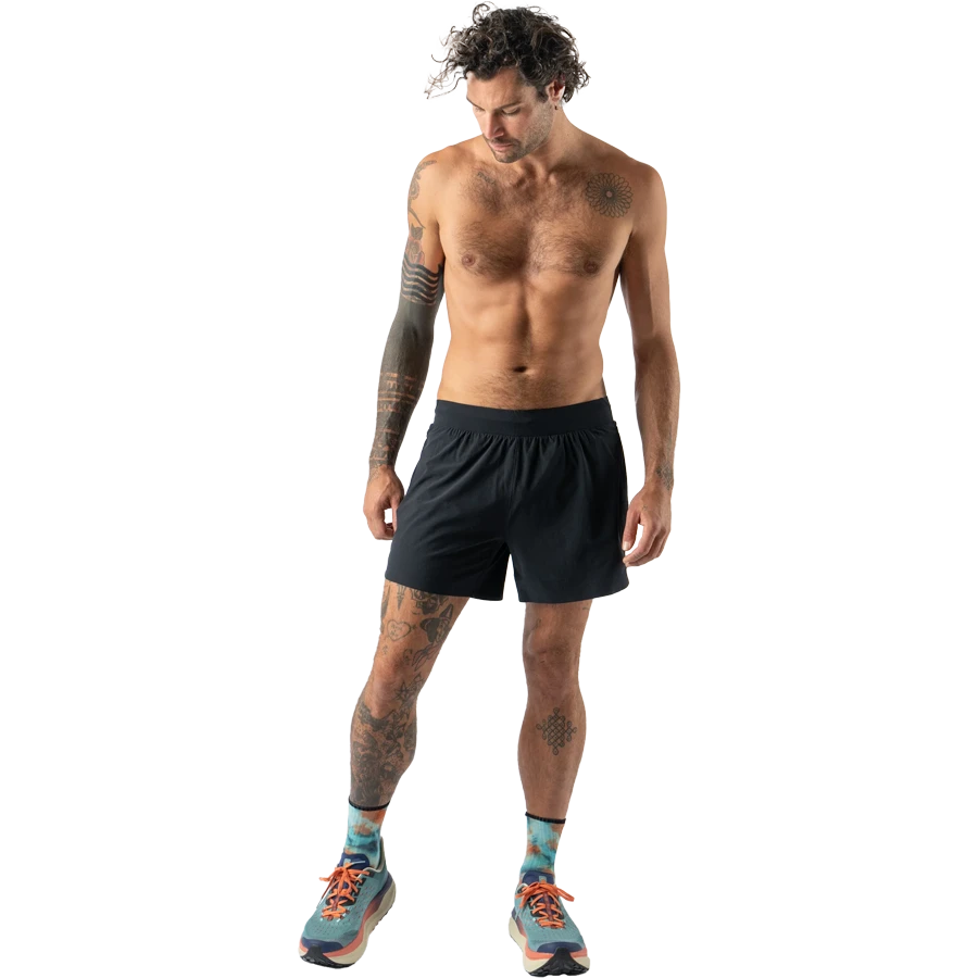 Built for trail racing and everyday miles, the Rabbit Men’s FKT 5″ Short delivers rugged performance without sacrificing comfort. Designed with a semi-relaxed fit and Rabbit’s most technical fabrics yet, this trail-ready short features DuraWeave™ body fabric for unmatched durability, a soft FlexKnit waistband, and Polartec Fresh Face liner to keep you cool and odor-free. With 9 total pockets—including rear zip and stash options—this is your ultimate do-everything trail short.