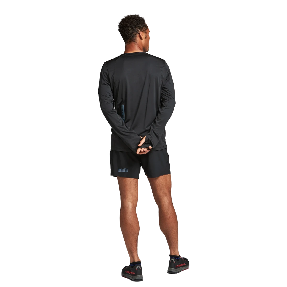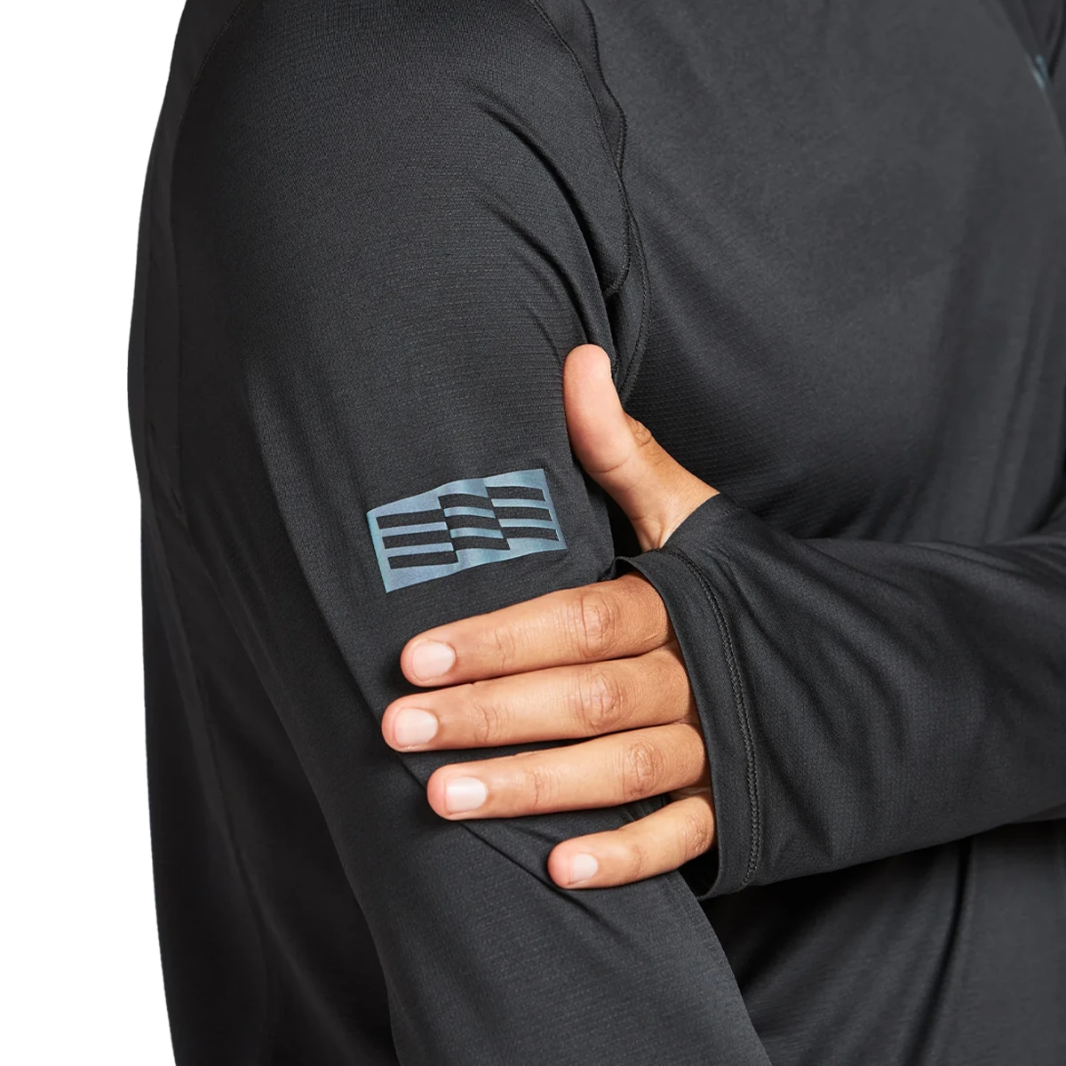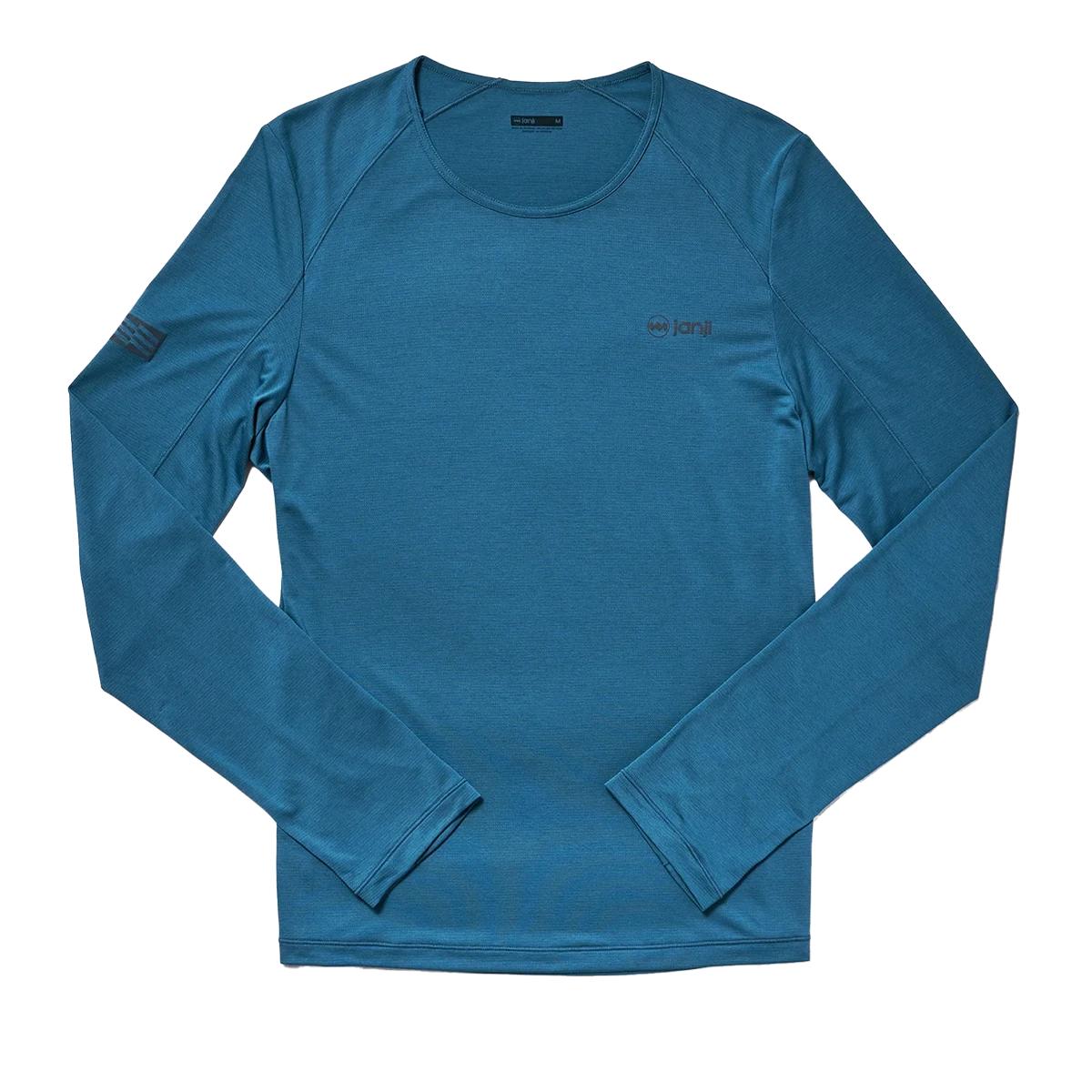 - Janji signature reflective logo on front hem + “watermark” reflectivity on back increase visibility in low light