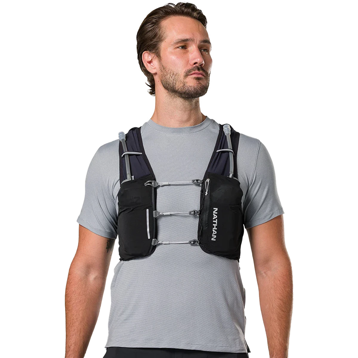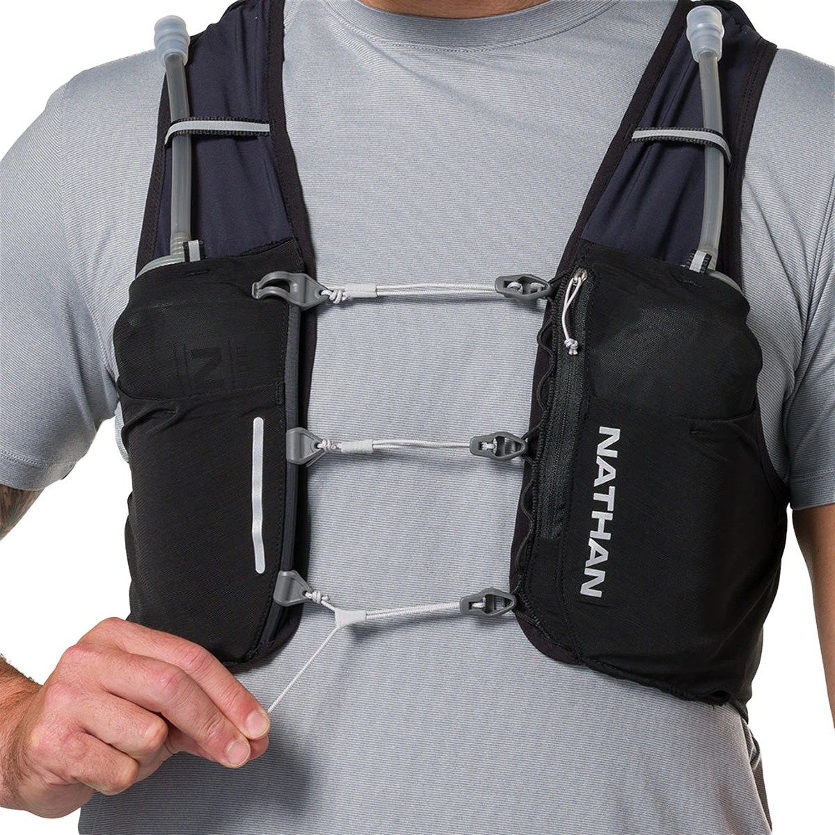 - Equipped with 2 Nathan x Hydrapak 20 oz/592 ml flasks with extended straws