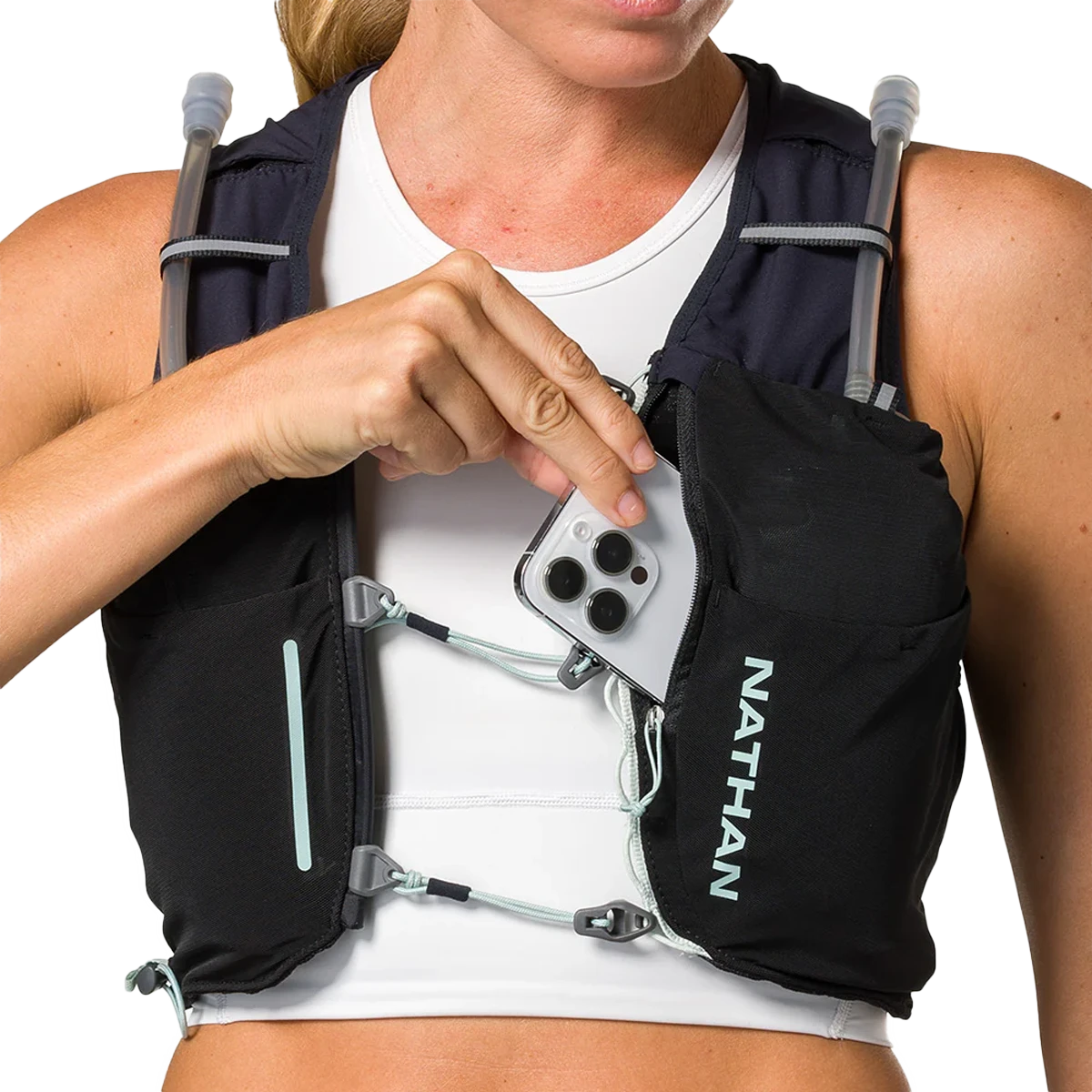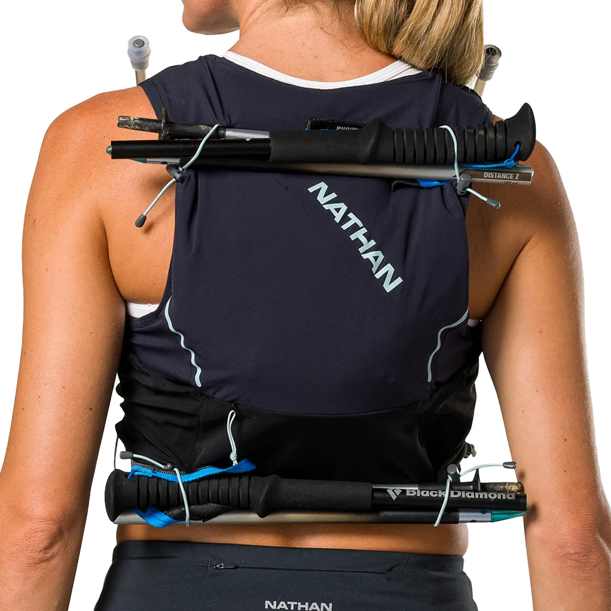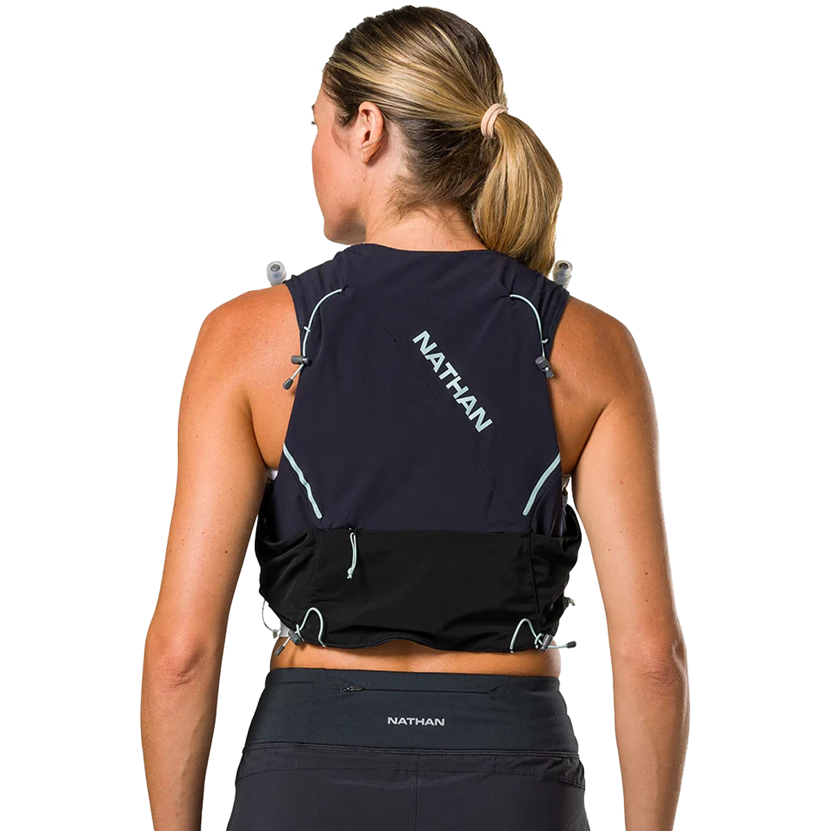 - Equipped with 2 Nathan x Hydrapak 20 oz/592 ml flasks with extended straws that can be cut / customized to wearers ideal length