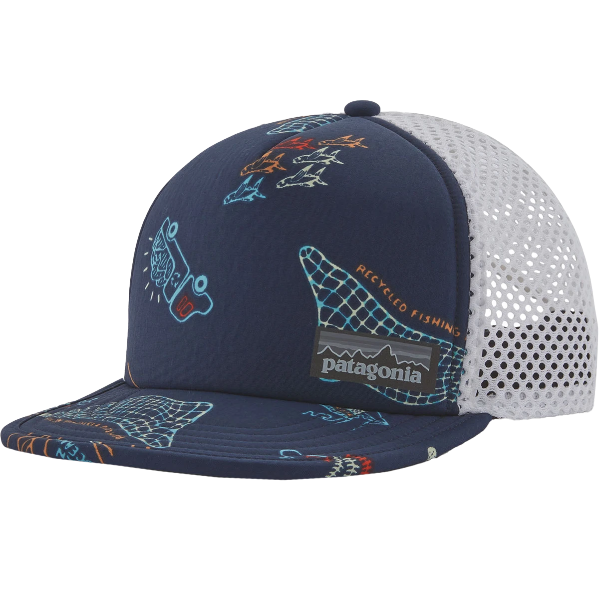 The Patagonia Duckbill Trucker Hat is built with lightweight NetPlus® 100% postconsumer recycled nylon made from recycled fishing nets—the same fabric as their much-loved Baggies—this brimmed, runner-inspired hat combines quick-wicking, breathable and packable versatility with a classic trucker-style aesthetic. Fair Trade Certified sewn.