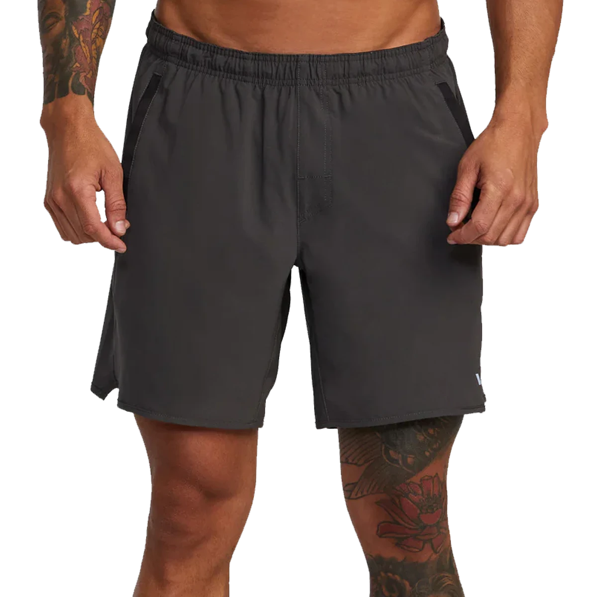 Combining heritage design and performance-enhancing comfort, the RVCA Yogger stretch elastic athletic shorts 17″ have you covered. These men’s athletic shorts are made from stretch polyester and feature an elastic drawcord waist, slightly scalloped hem with split side vent and pockets throughout. Topped with RVCA VA branding.