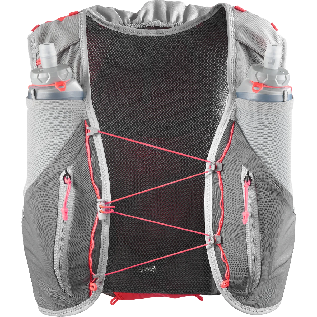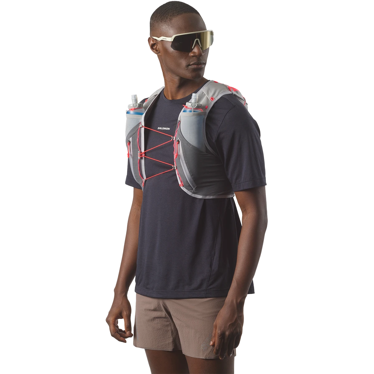 Featuring an improved fit and sternum strap design that’s comfortable for both men and women, the Salomon Advanced Skin 12 Set Pack is a must-have for long-distance trail runners. This pack delivers 12L of storage capacity for extra layers of apparel, nutrition, and essential gear, as well as 34 oz of hydration between dual Soft Flasks, with the option of holding a Salomon Soft Reservoir 1.5L (sold separately) within the rear pocket. This pack’s lightweight design uses Sensift technology with a unique sternum strap system for a comfortable and bounce-free experience. A rear through pocket in the back can be accessed for on-the-go apparel changes while a large expandable zipper pocket secures apparel, gloves, nutrition, and more.