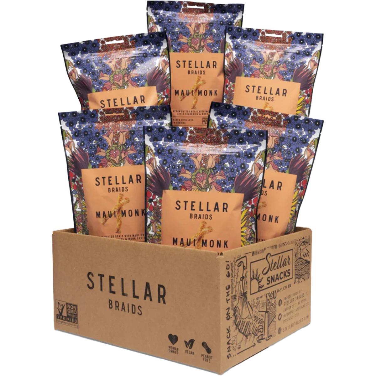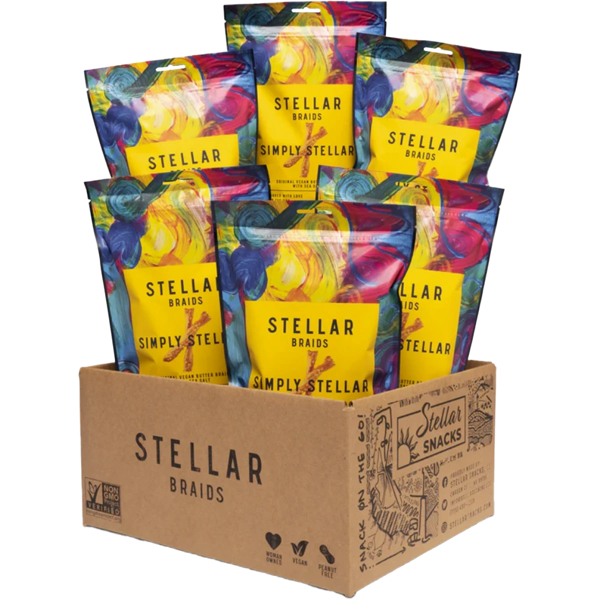 Try Stellar Pretzel Braids! These classic vegan pretzels are made with rich vegan butter and lightly seasoned with sea salt from Italy, creating a savory and satisfying taste that will leave you wanting more. Enjoy on their own or with your favorite dip. Whether you’re looking for office snacks or buying pretzels in bulk for your next party, Stellar Snacks will take your snacking experience to new heights.