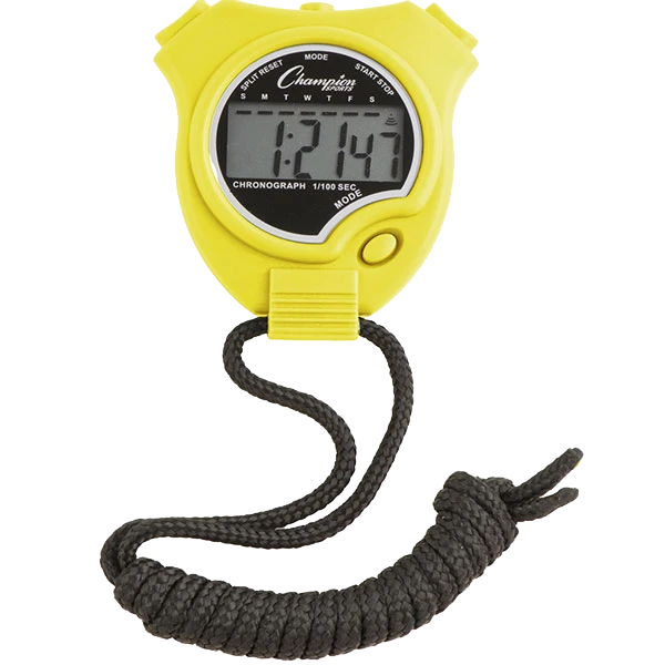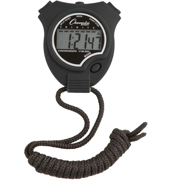 The Champion Sports Stop Watch is a great compact stop watch with included features such as daily alarm, hourly chime, big digit display, and is water and shock resistant structure