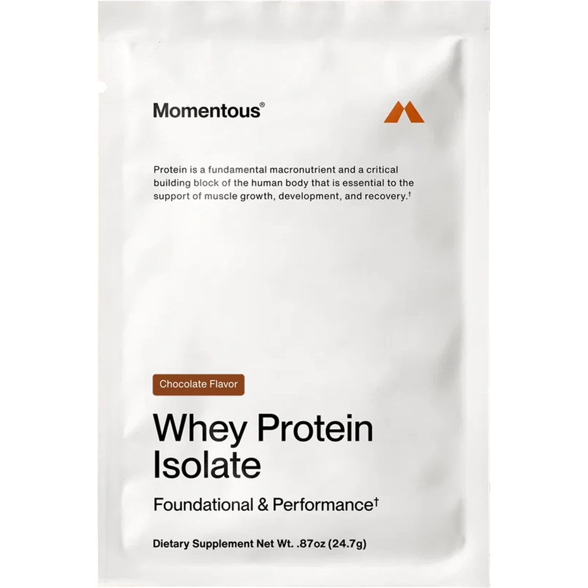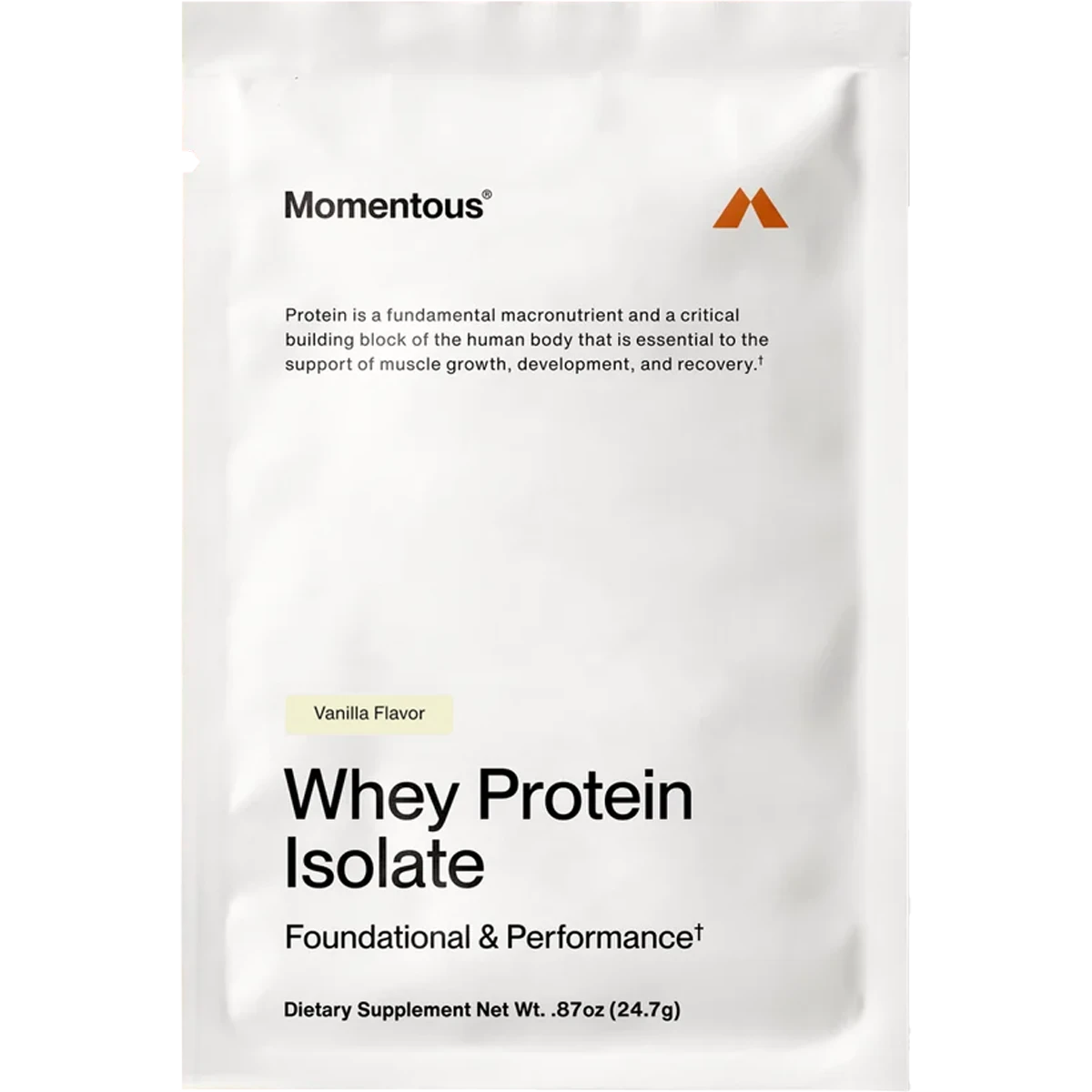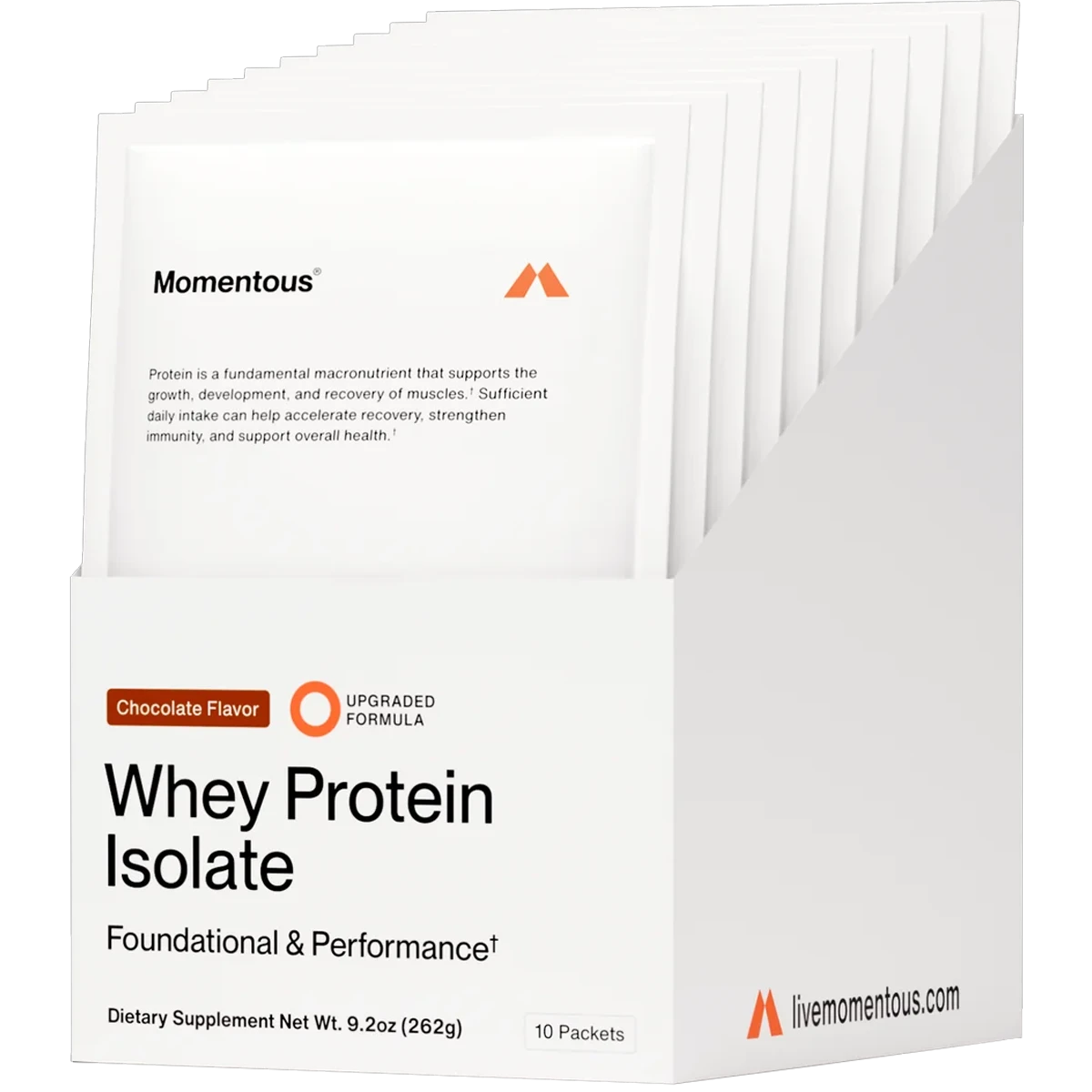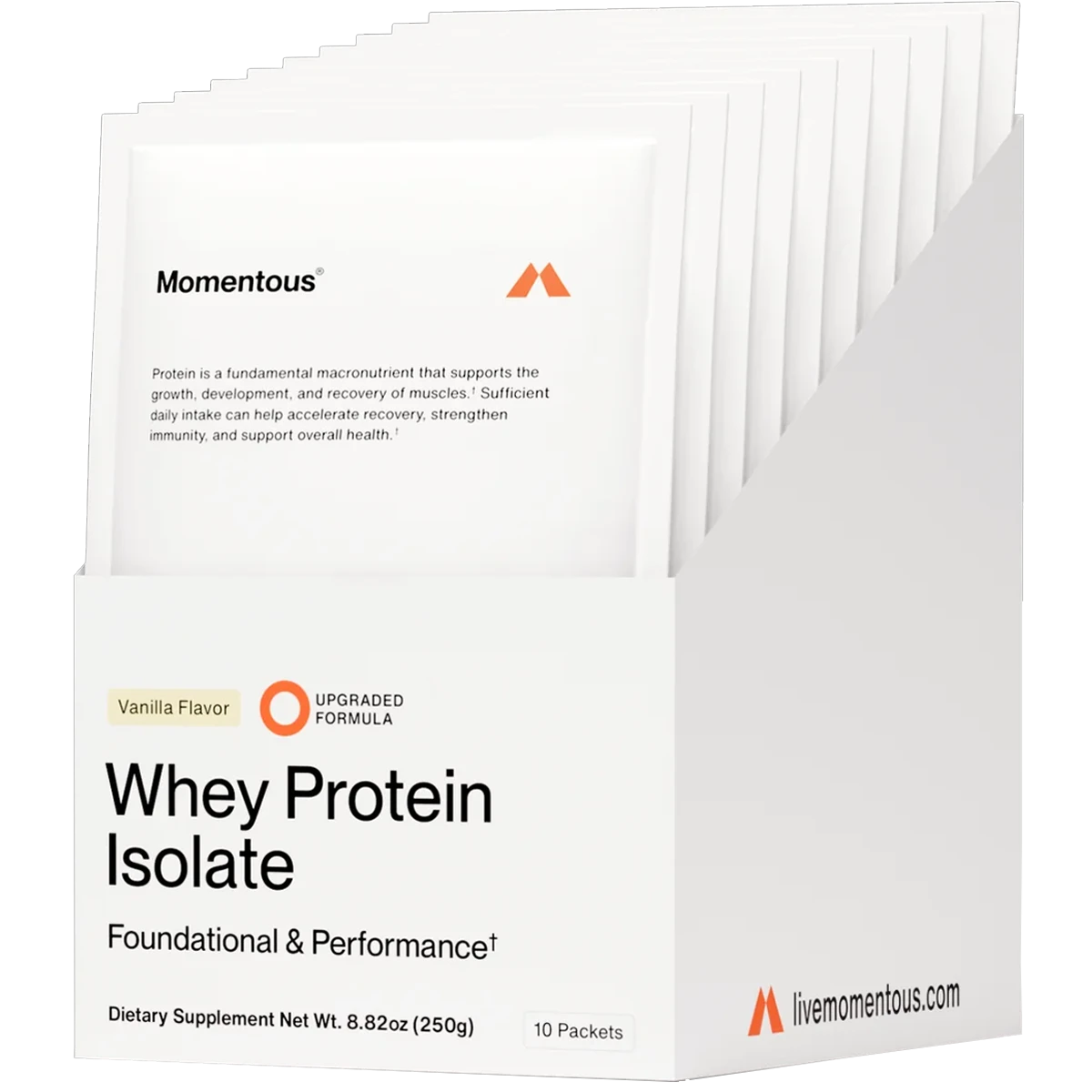 Momentous Whey Protein Isolate delivers 20g of grass-fed protein per serving to support muscle growth, recovery, and daily wellness. Sourced from European dairy farms held to rigorous standards, and cold-processed to preserve its amino acid profile, it’s designed for maximum absorption and minimal GI discomfort. Enhanced with ProHydrolase® enzymes and NSF Certified for Sport®, this clean, high-performance formula is trusted by elite athletes and everyday high-performers. Made with only the essentials—no fillers, gums, or artificial sweeteners—whey isolate meets The Momentous Standard™ in formula cleanliness, efficacy, and testing. It’s essential for everyone, every day.