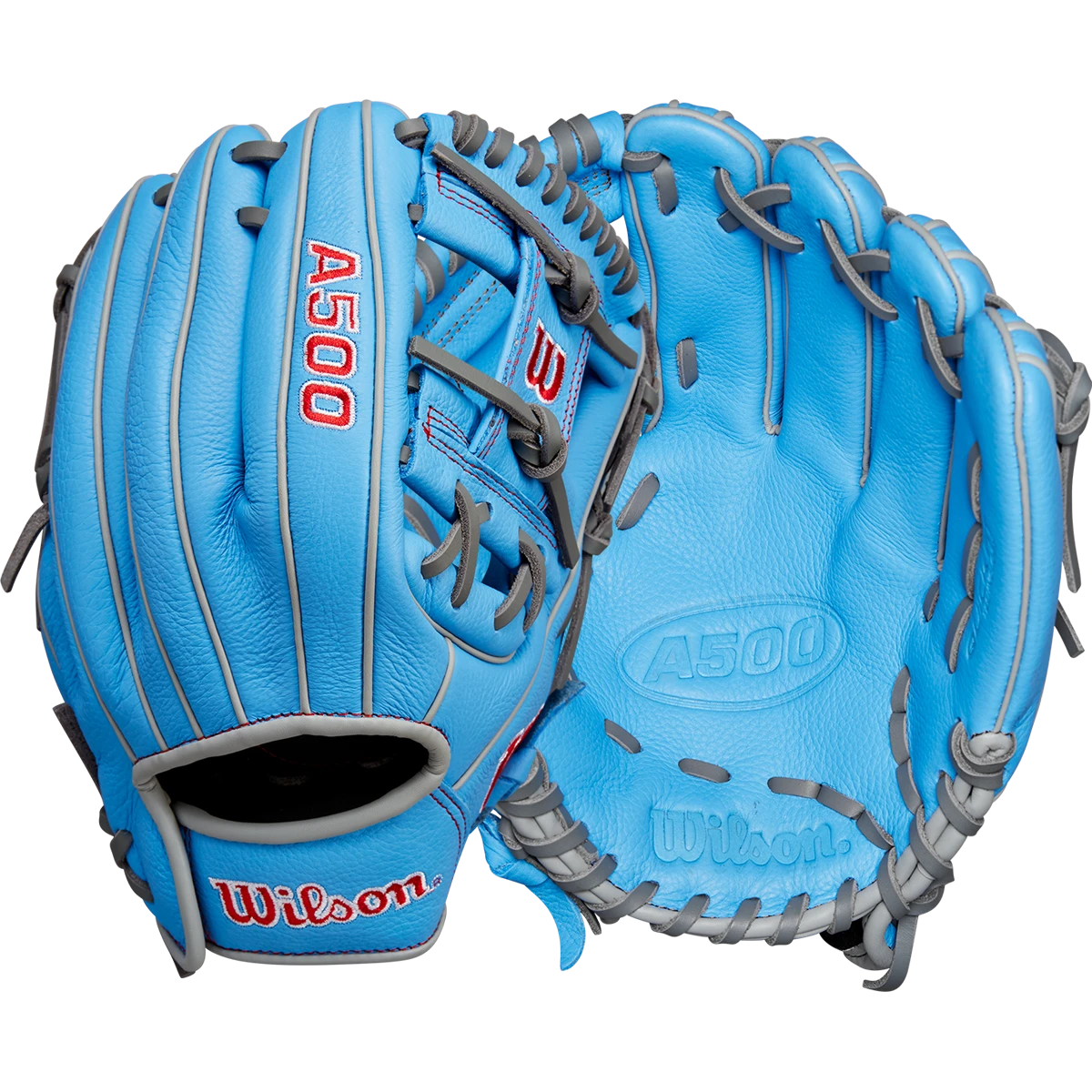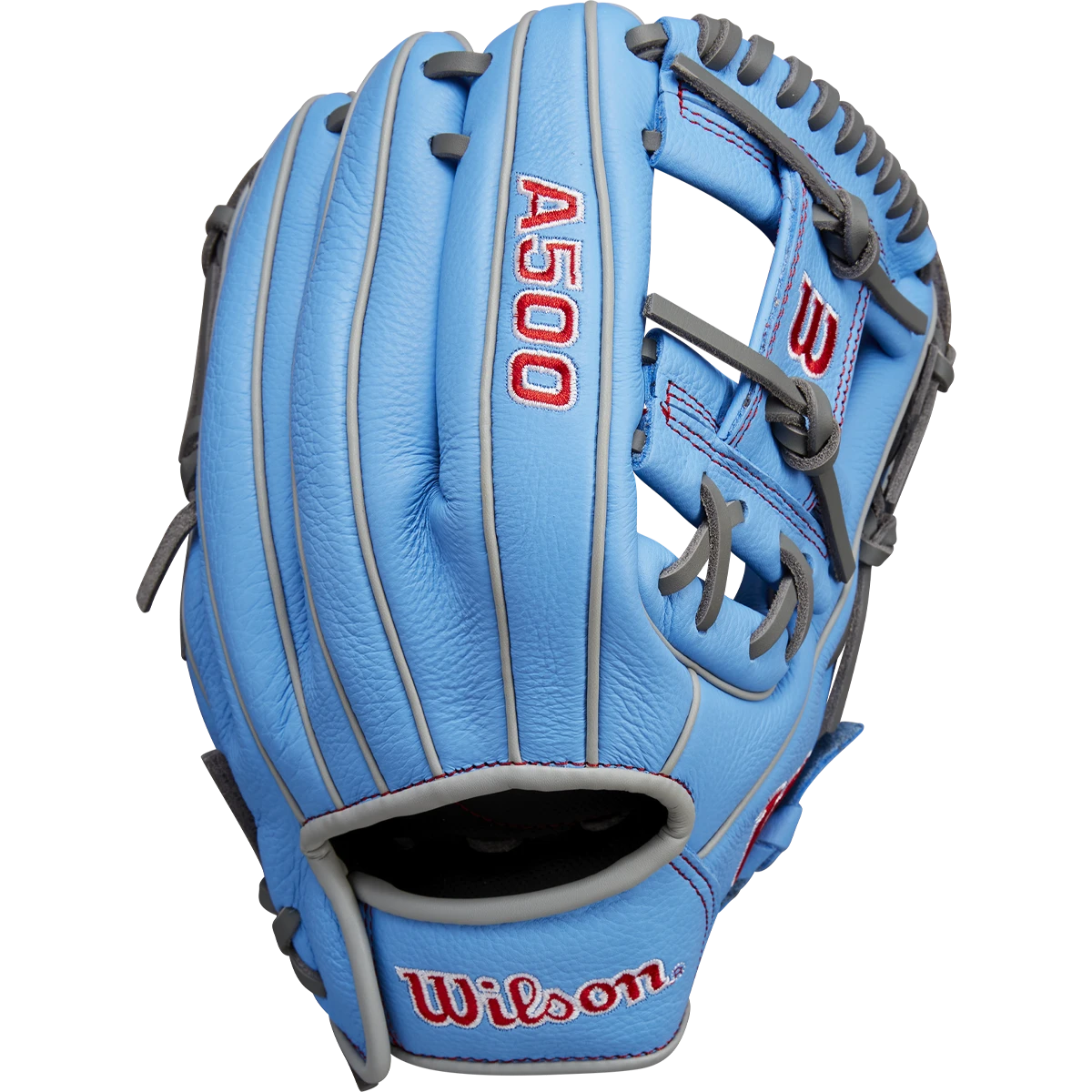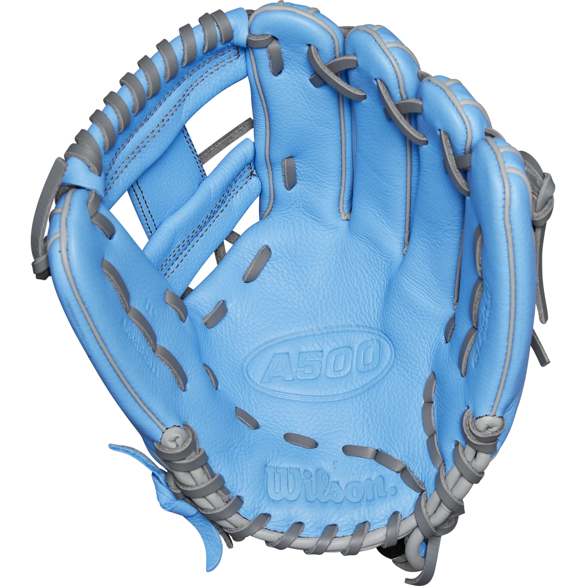 The 11″ A500® baseball glove features full leather construction that’s soft and ready to play after a quick break-in process, helping young ball players learn the ropes on defense. Cool Blue & Grey Top Grain leather offers a lightweight feel to give players ages 6 and older easy control of the glove, and the self-adjusting Quick Fit Wrist strap hugs the back of the hand. Wilson’s iconic H-Web is designed to catch ground balls or pop ups anywhere on the field.