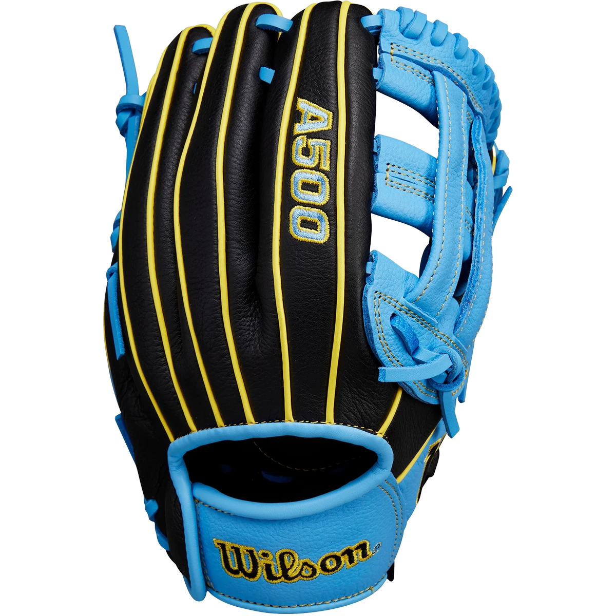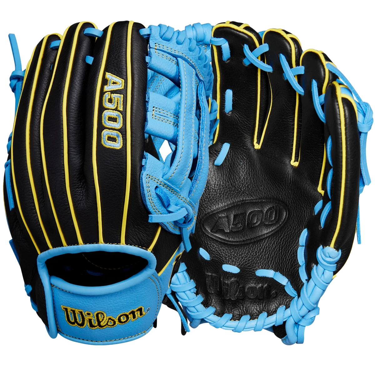 The 10.5″ A500 baseball glove features full leather construction that’s soft and ready to play after a quick break-in process, helping young ball players learn the ropes on defense. Black & Cool Blue Top Grain leather offers a lightweight feel to give players ages 6 and older easy control of the glove at multiple positions. The self-adjusting Quick Fit Wrist strap hugs the back of the hand. A sturdy Dual Post Web holds its shape while extending for the ball.