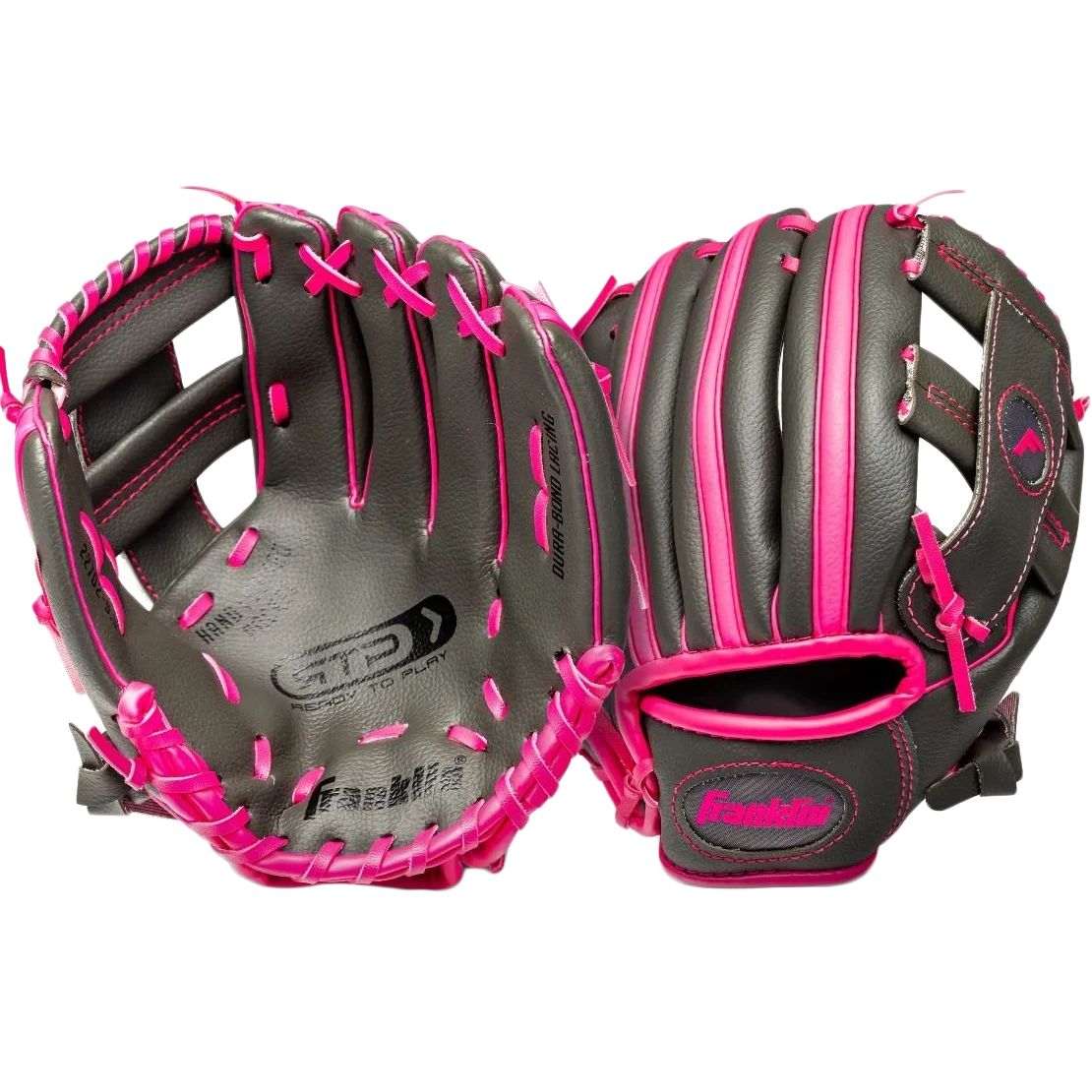 Franklin’s RTP (Ready-To-Play) Performance Tee-ball Gloves are available in unique color schemes for boys and girls. Both offer the lightest and most comfortable glove feel for any beginner learning the fundamentals of America’s pastime. These tee-ball gloves are made with RTP II construction allowing for a seamless transition from the box to the playing field – no break-in required. Outfit the young tee-baller in your family with the finest glove for unmatched comfort and support in the field.